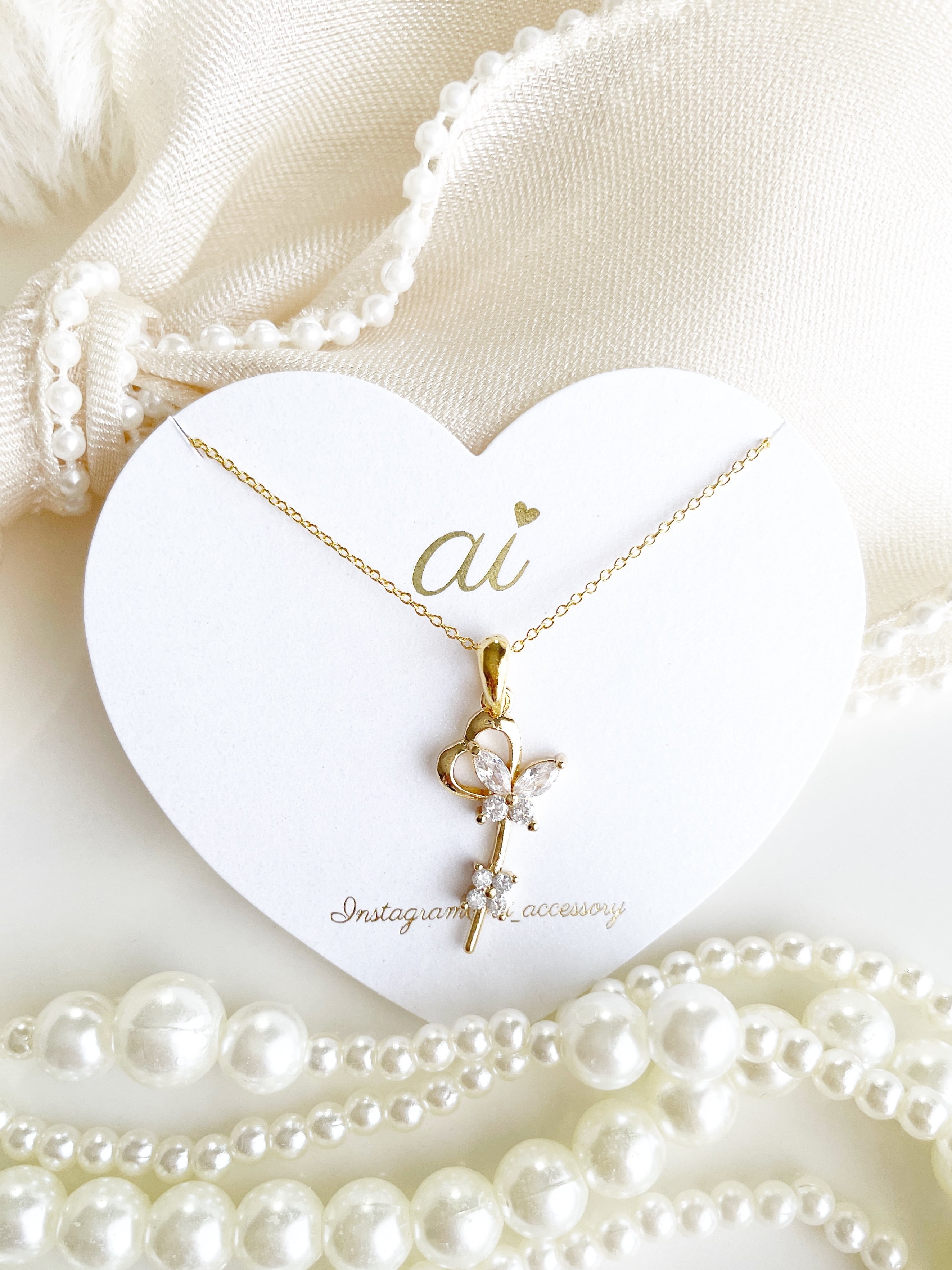キュービックジルコニアのハートネックレス♡