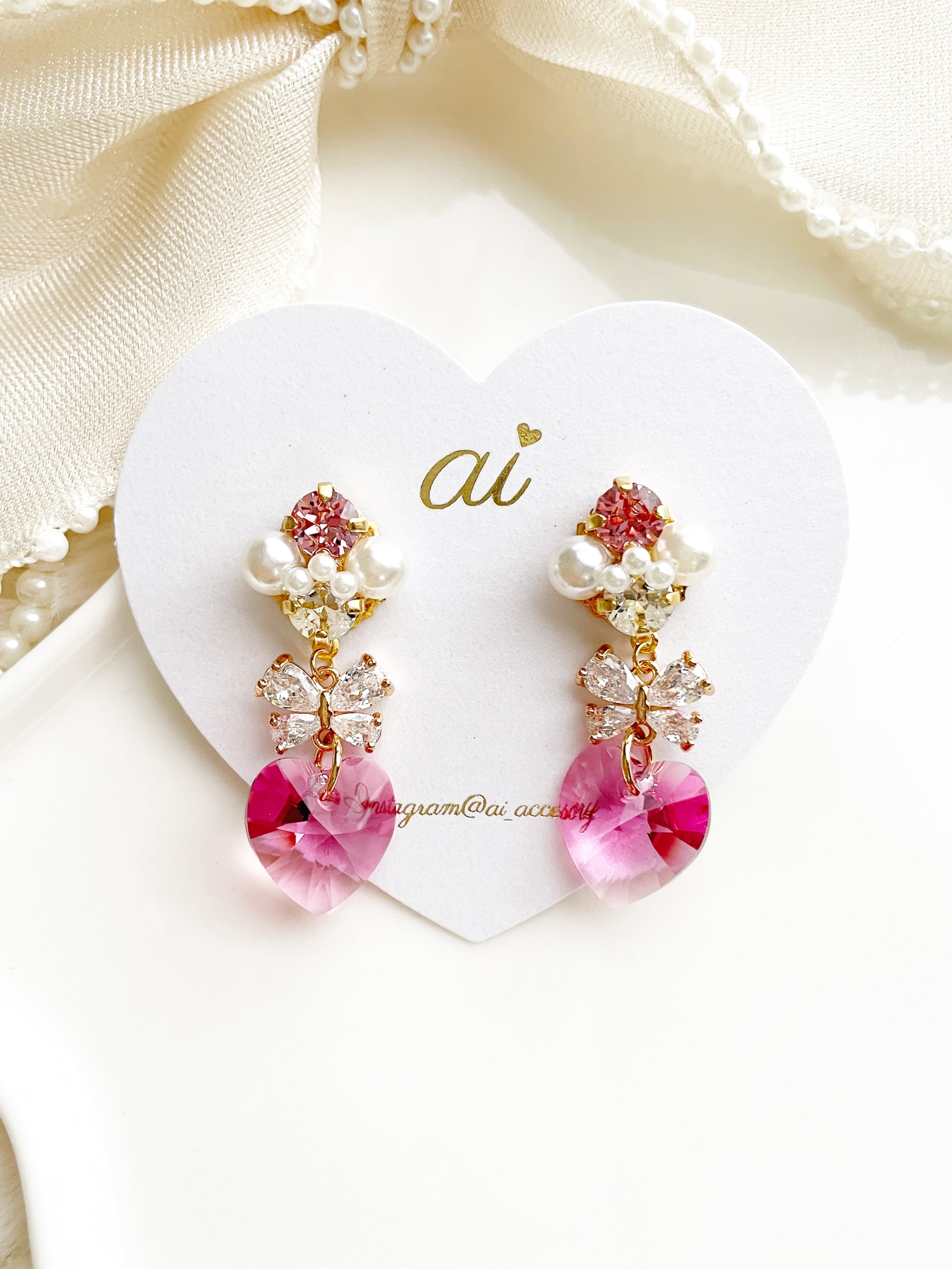 上品なスワロフスキービジューとパール、そして透明感あふれるスワロフスキーハート。