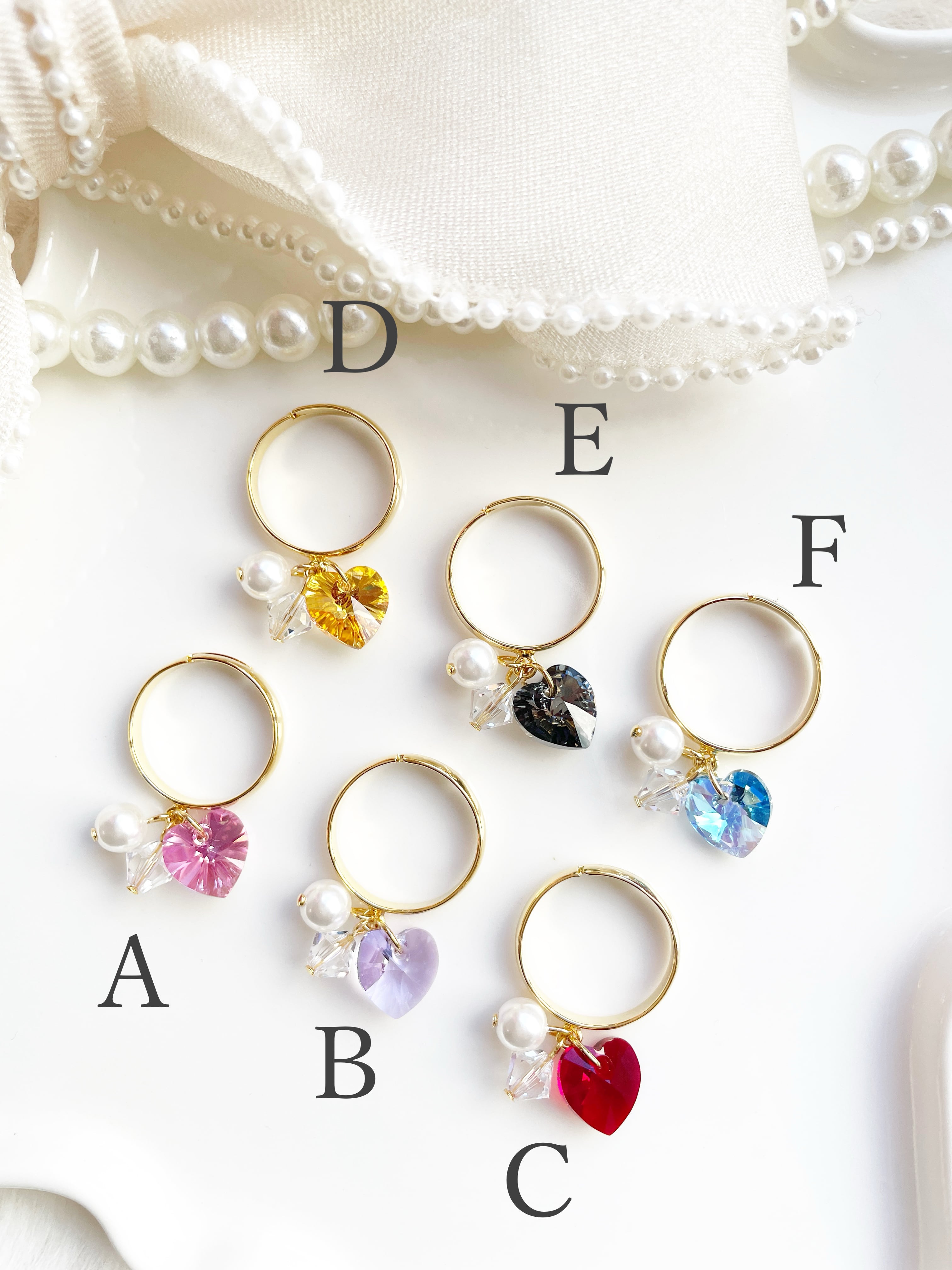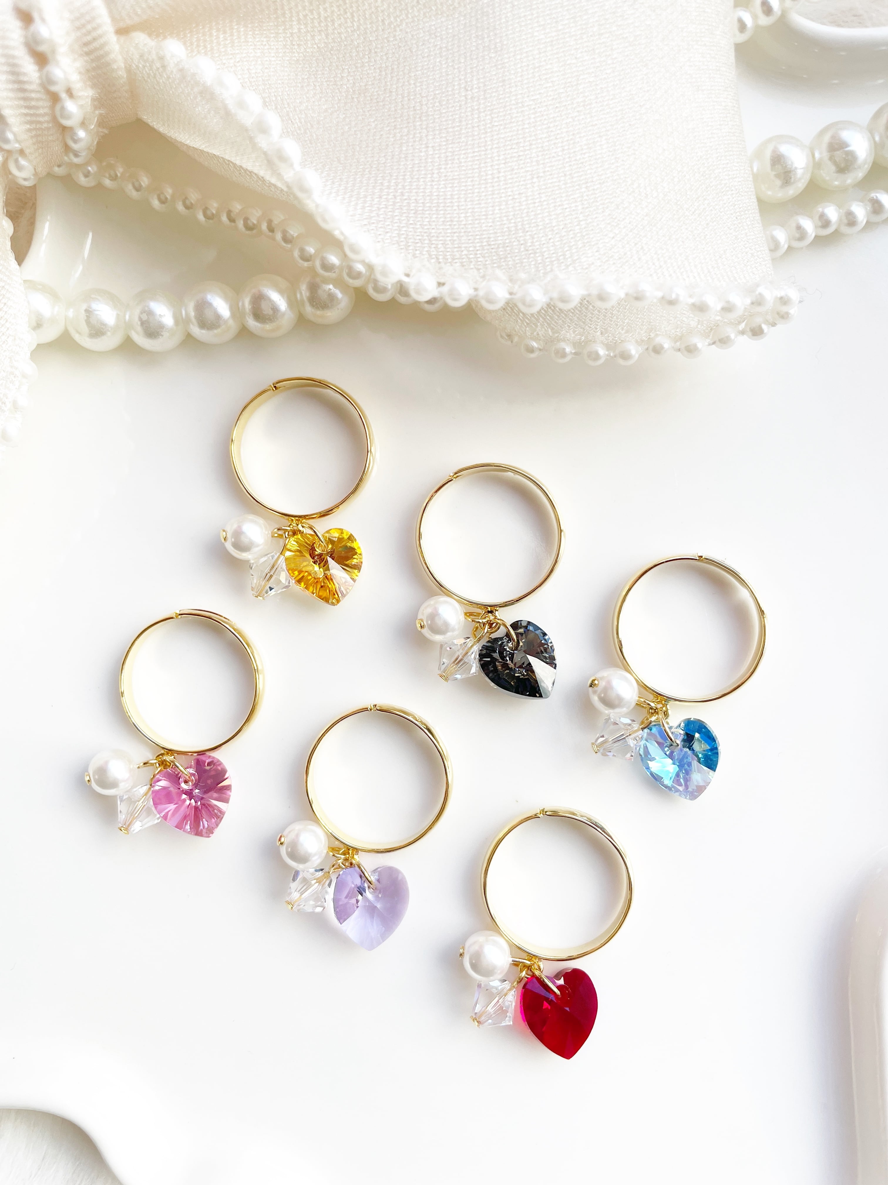 スワロフスキーハートとパープルが揺れるリング♡