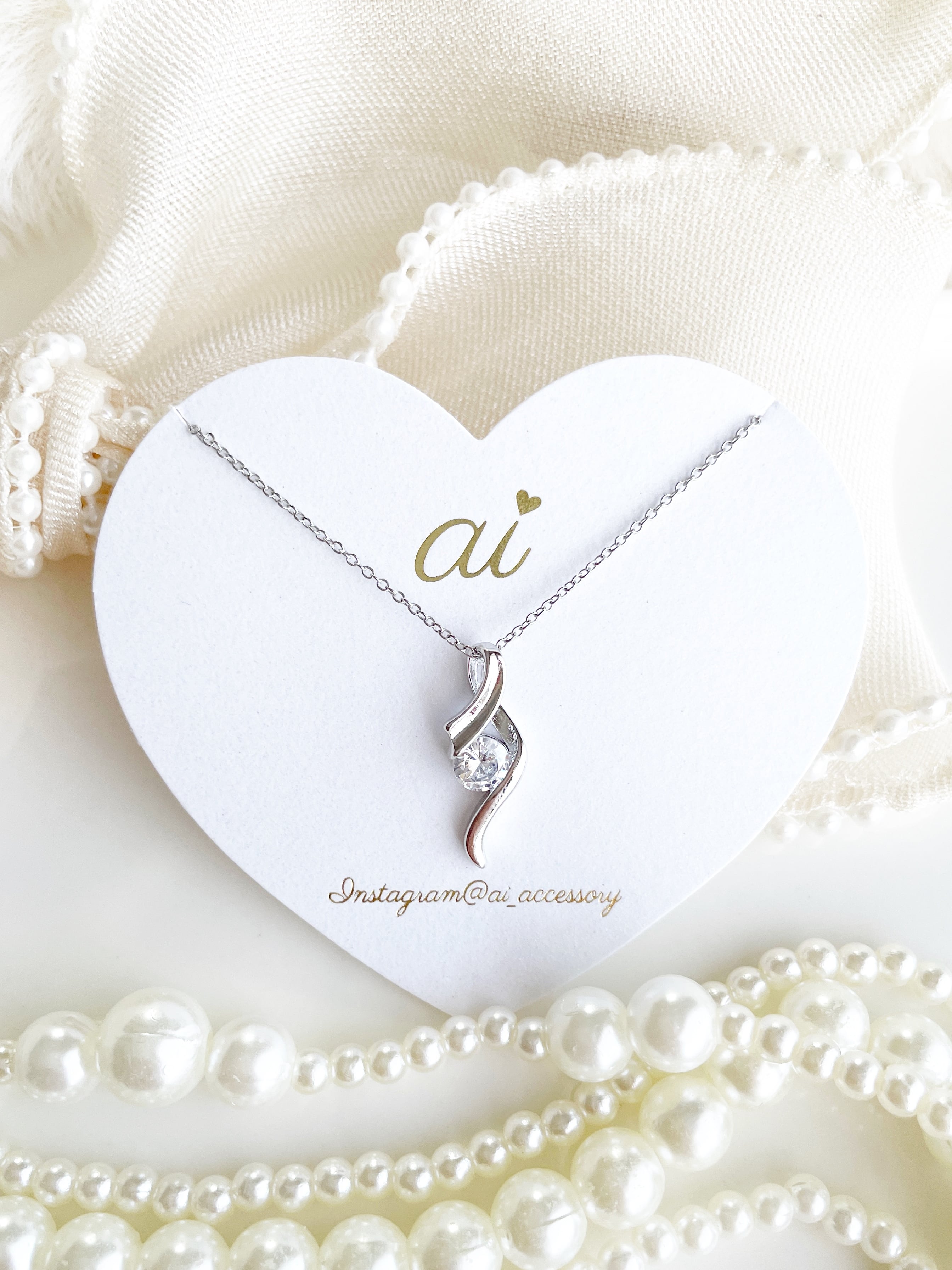 曲線が美しいデザインに、キュービックジルコニアがきらりと光るネックレス♡