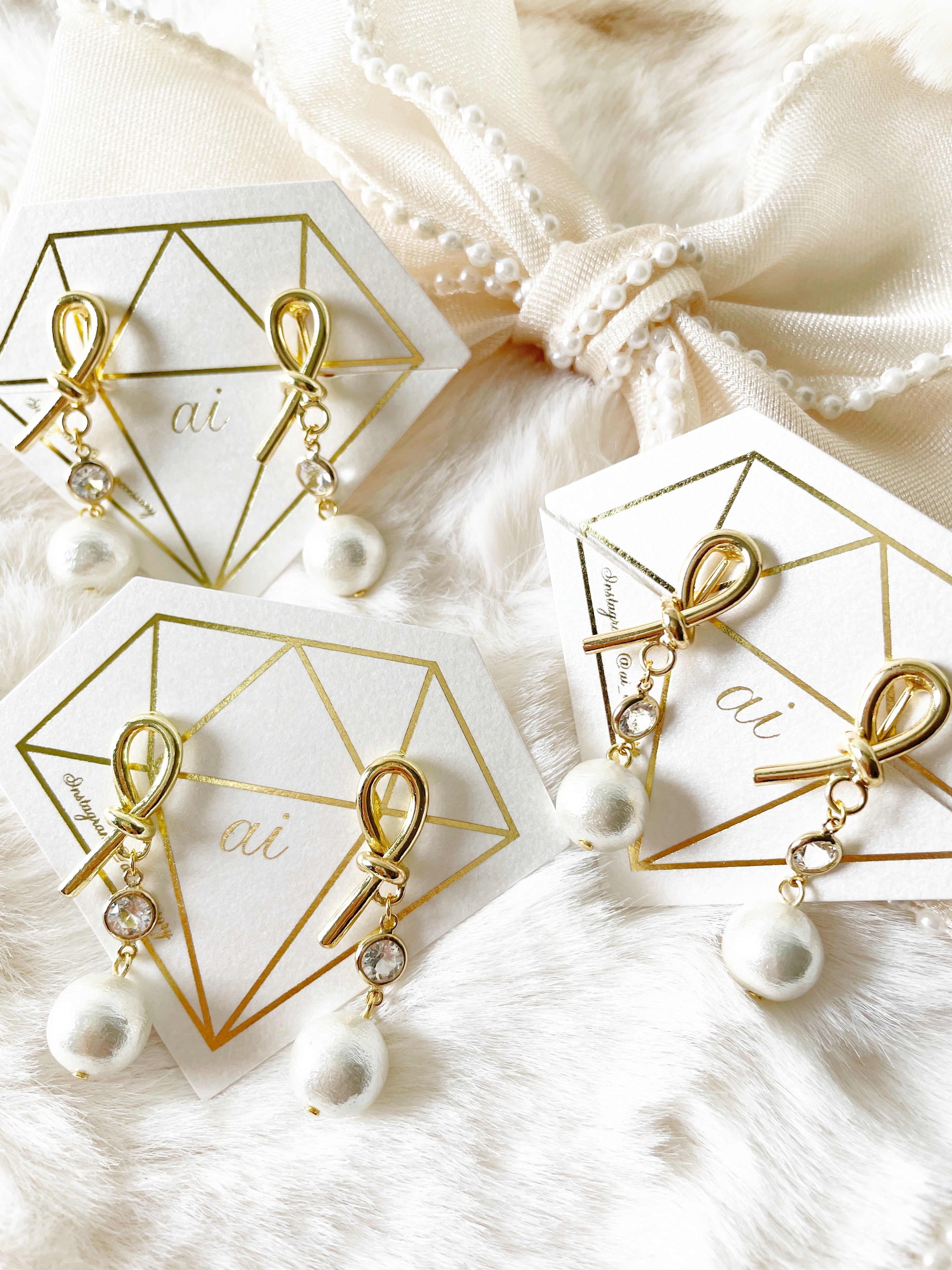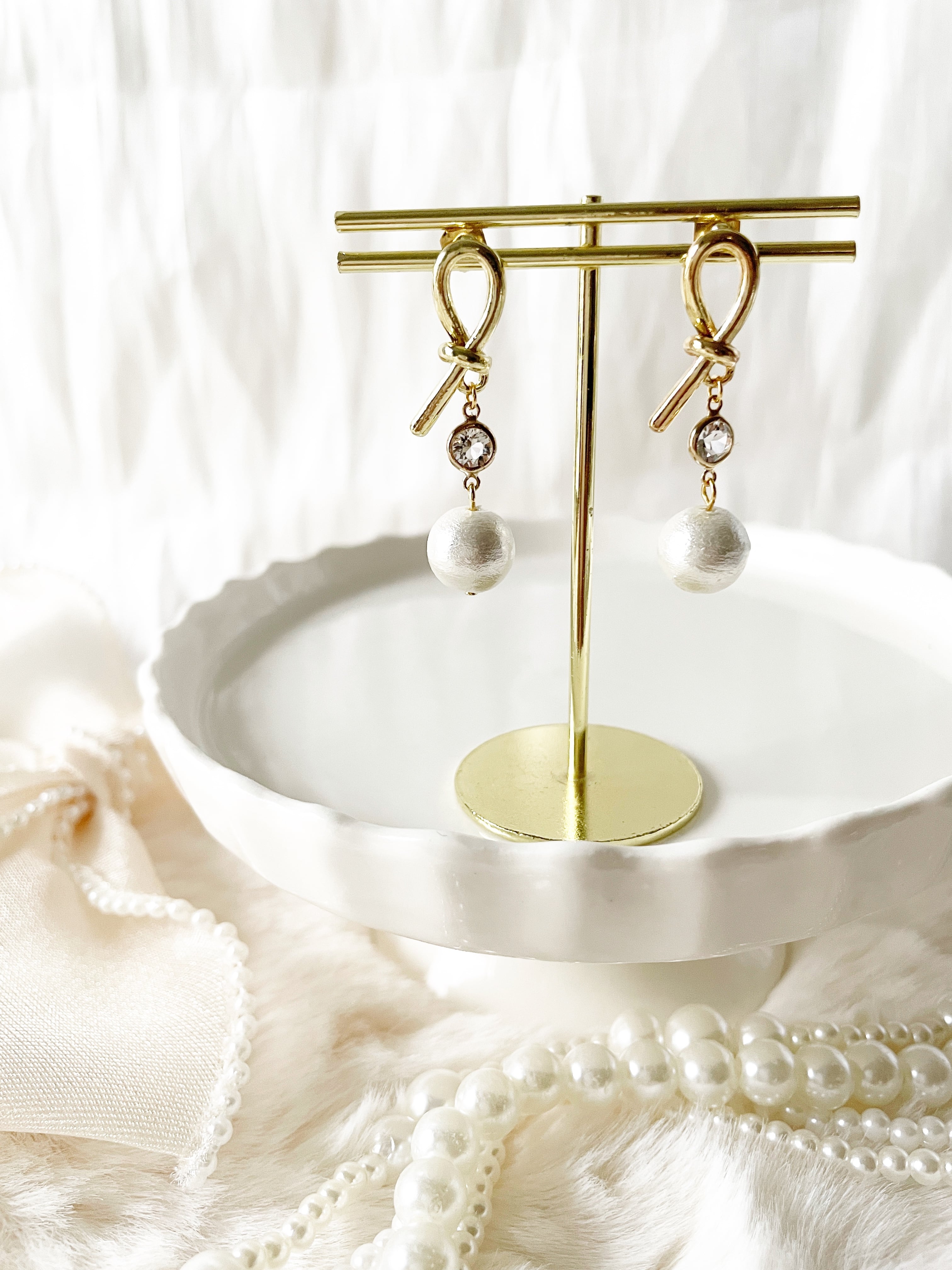 スワロフスキーとコットンパールを合わせた
